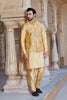 Cool Grey jacket kurta set, Sleeveless jacket featuring delicate floral thread emboidery, coordinated with a matching kurta and Aligarhi pants for a polished and sophistication look.