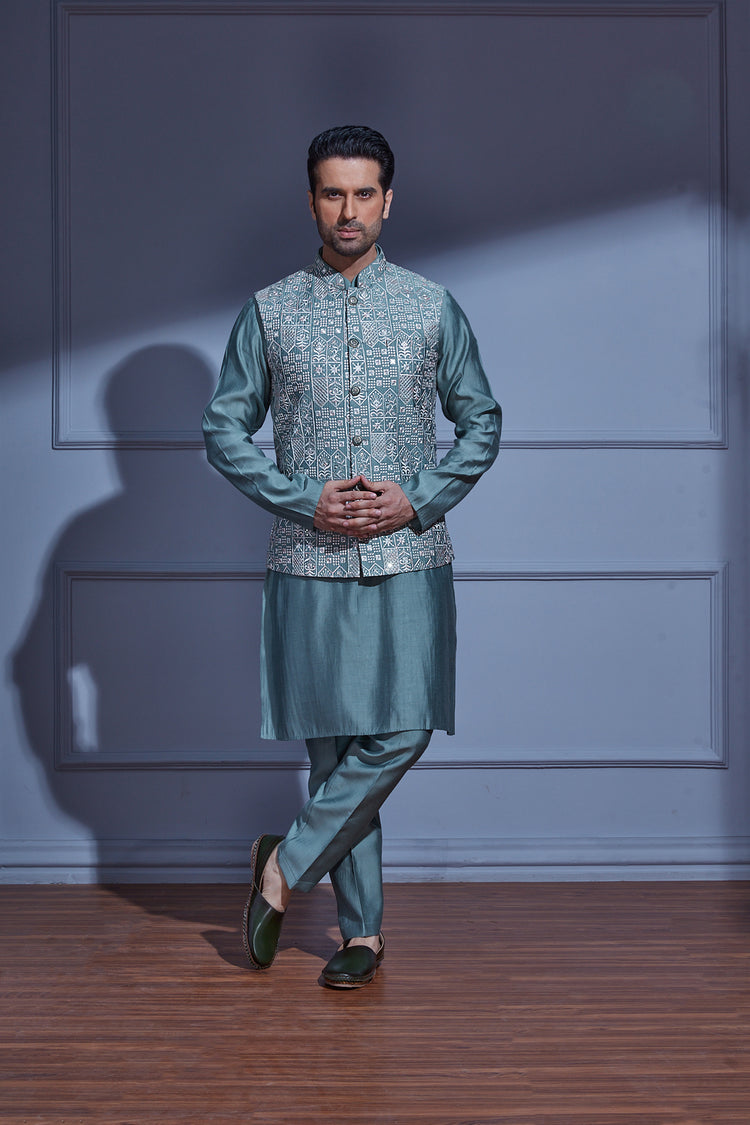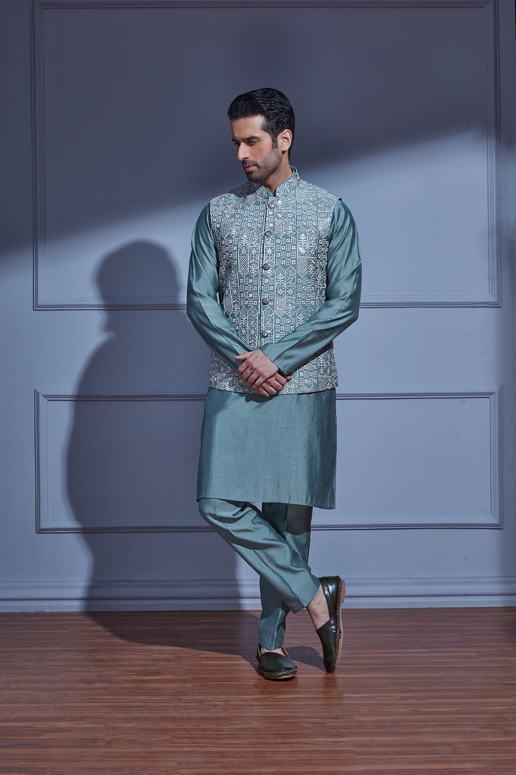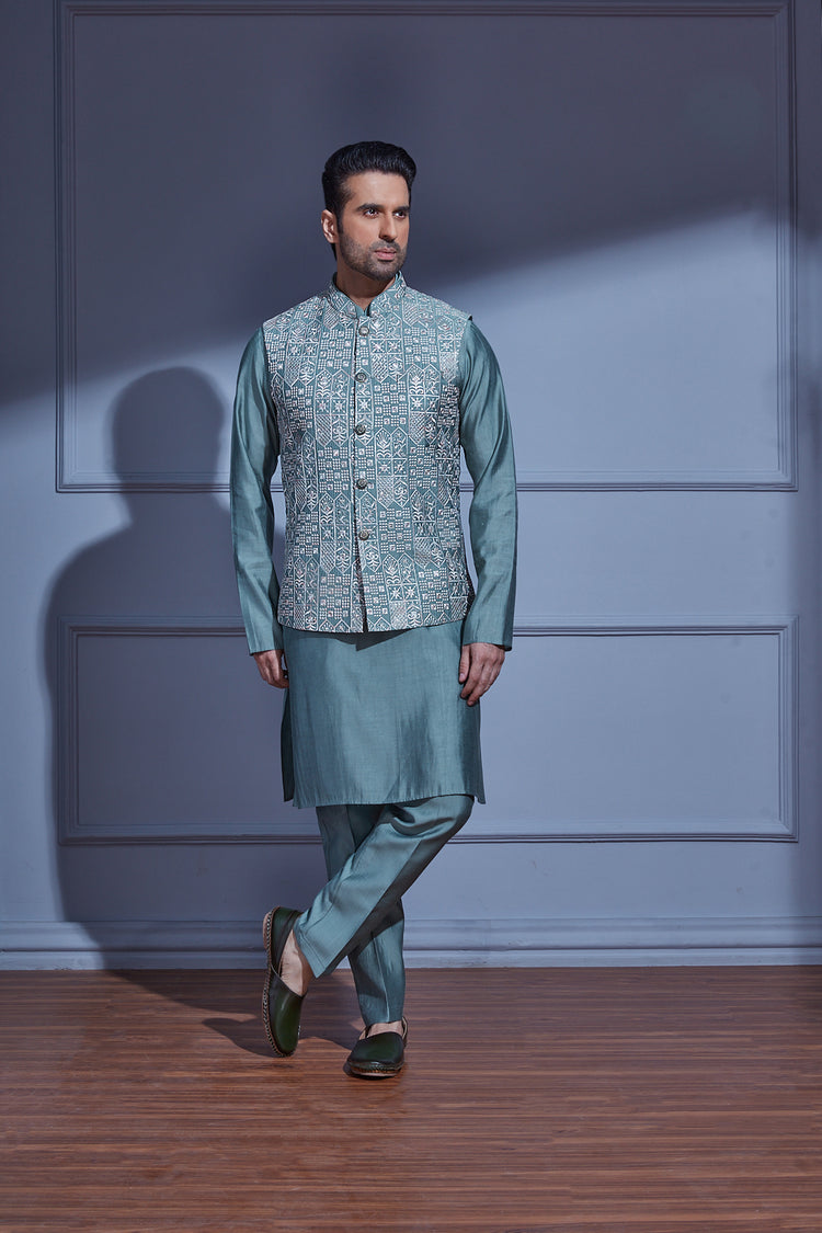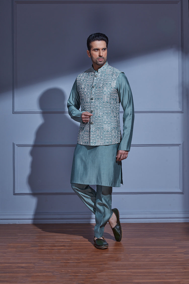 ALL OVER EMBROIDERED JACKET WITH SOLID KURTA SET