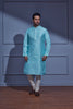 Stand out with this Pearl White Kurta Set, featuring small gold prints on poly-blended jacquard fabric. The ensemble is adorned with an elegantly embroidered collar and neckline, perfectly paired with a Cream Chudidar for a polished and refined look.
